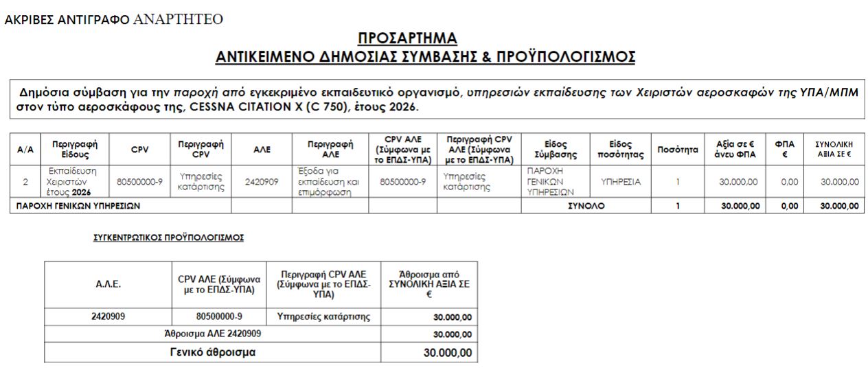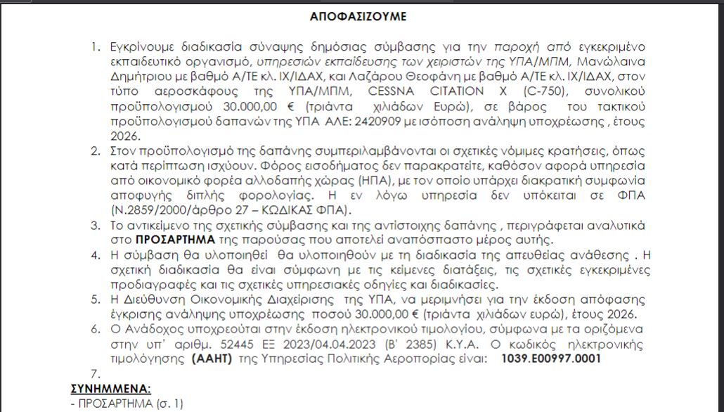 Το κόστος: Η απευθείας ανάθεση των 30.000 € στις FlightSafety/CAE είναι η αναγκαία «θυσία» για να διατηρηθεί το VIP status του αεροσκάφους.