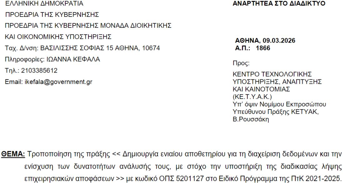 Στις 9 Μαρτίου 2026, μια απόφαση της Προεδρίας της Κυβέρνησης που αναρτήθηκε στη «Διαύγεια» σηματοδότησε μια δομική αλλαγή στον τρόπο με τον οποίο η χώρα μας αντιλαμβάνεται την εθνική ασφάλεια. Το έργο για τη δημιουργία ενός «ενιαίου αποθετηρίου διαχείρισης δεδομένων» από το ΚΕΤΥΑΚ (Κέντρο Τεχνολογικής Υποστήριξης, Ανάπτυξης και Καινοτομίας) της ΕΥΠ, ξεπερνά τα όρια μιας απλής τεχνικής αναβάθμισης.