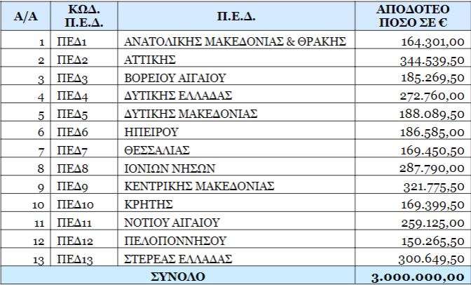 Η ΚΕΔΕ εξασφάλισε τη μερίδα του λέοντος με 2 εκατομμύρια, όμως το «ζουμί» βρίσκεται στα υπόλοιπα 3 εκατομμύρια που μοιράστηκαν στις Περιφερειακές Ενώσεις. Η ΠΕΔ Αττικής κόβει πρώτη το νήμα με 344.539€, επιβεβαιώνοντας τον όγκο των αναγκών του λεκανοπεδίου, ενώ η Κεντρική Μακεδονία ακολουθεί με 321.775€.