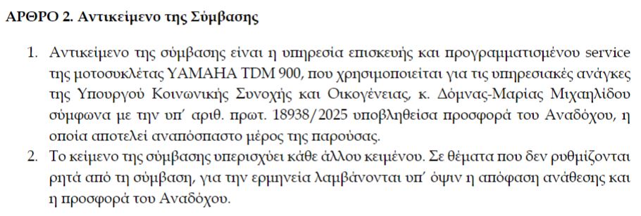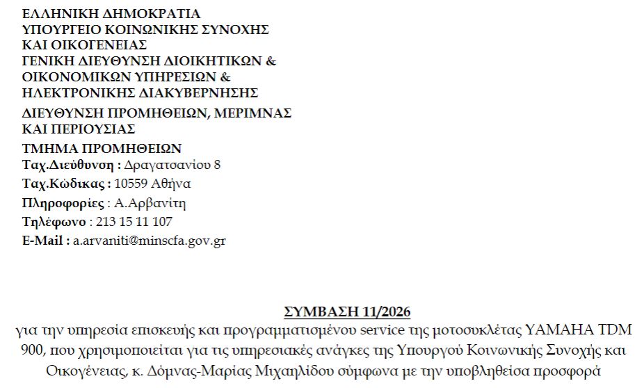 Η απόφαση που έχει στην κατοχή του το nocomment (20 Μαρτίου), αναφέρεται στην επίσημη σύμβαση για τη συντήρηση της υπηρεσιακής μηχανής της Δόμνας-Μαρίας Μιχαηλίδου! Ναι, καλά διαβάσατε.